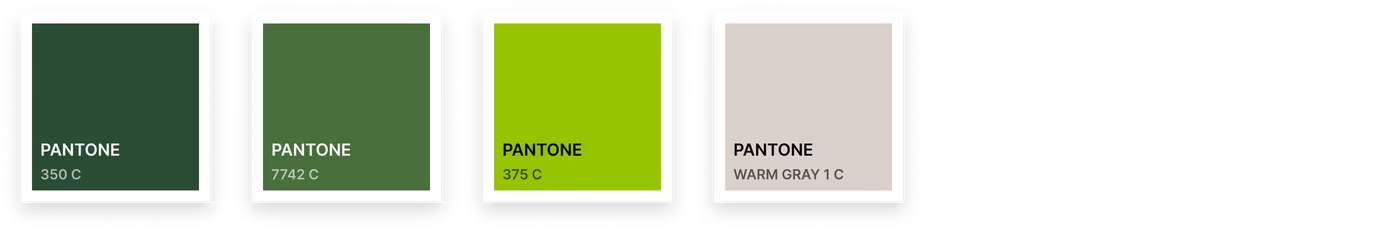 Pantone colors are used to ensure consistency across different materials and devices. These are the closest Pantone matches for our primary greens and beige and are mainly used for print purposes.